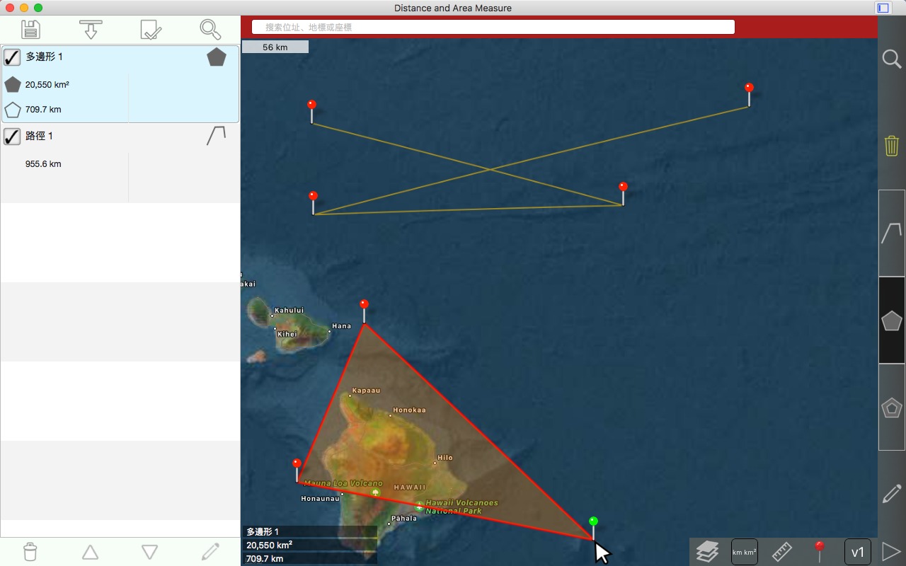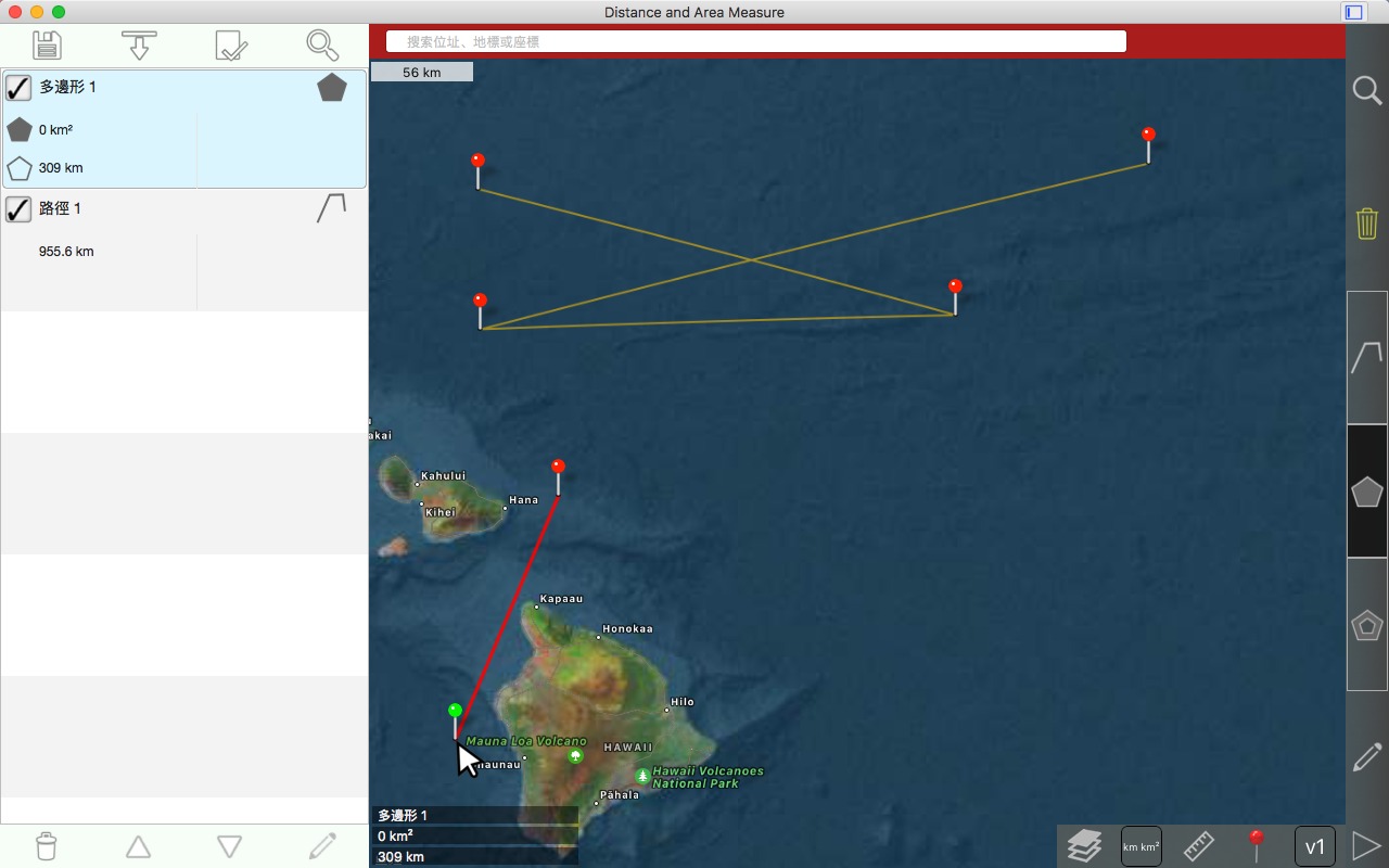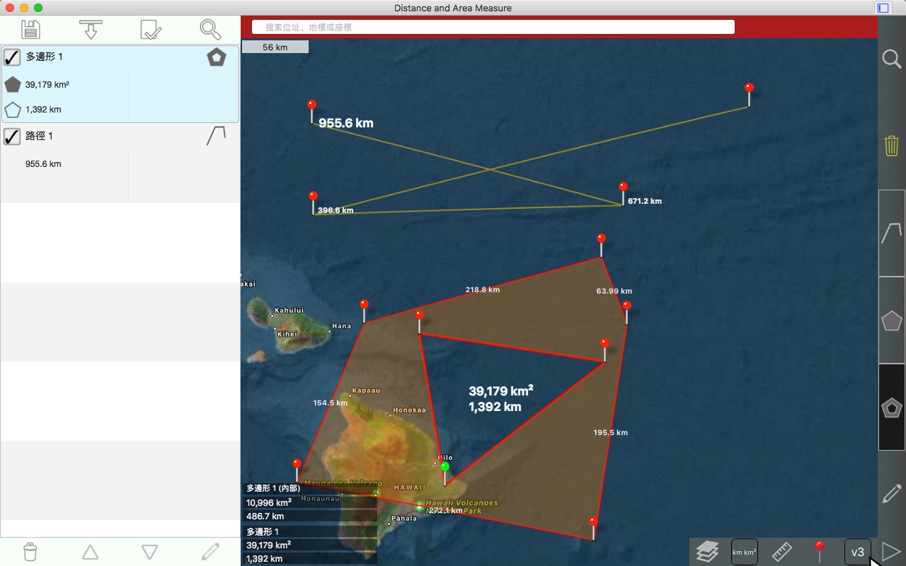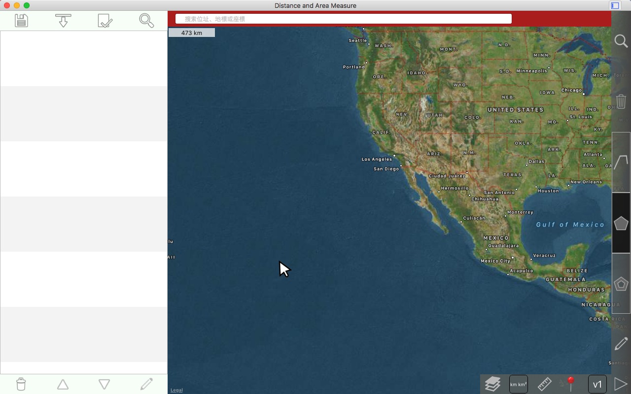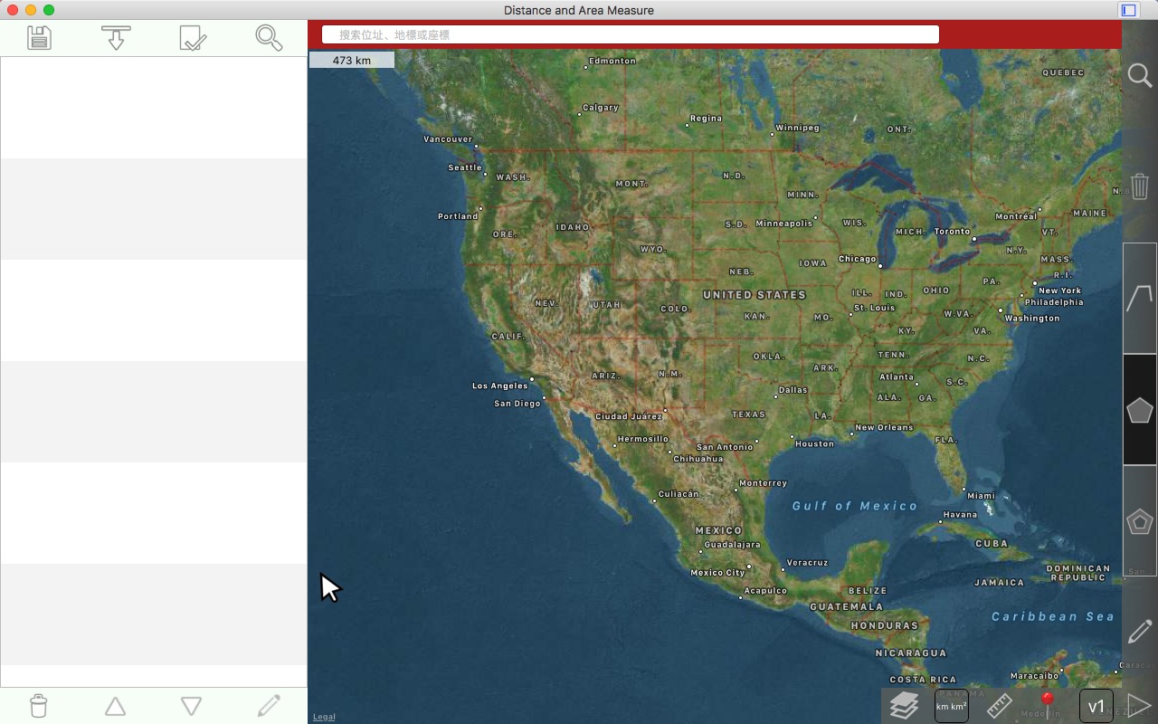 从卫星角度测量道路、公园、土地、国家、湖泊等。计算距离、区域和周长。