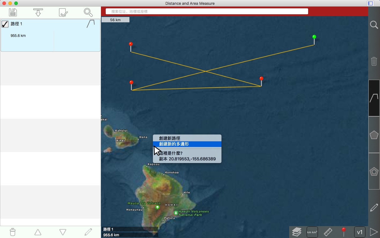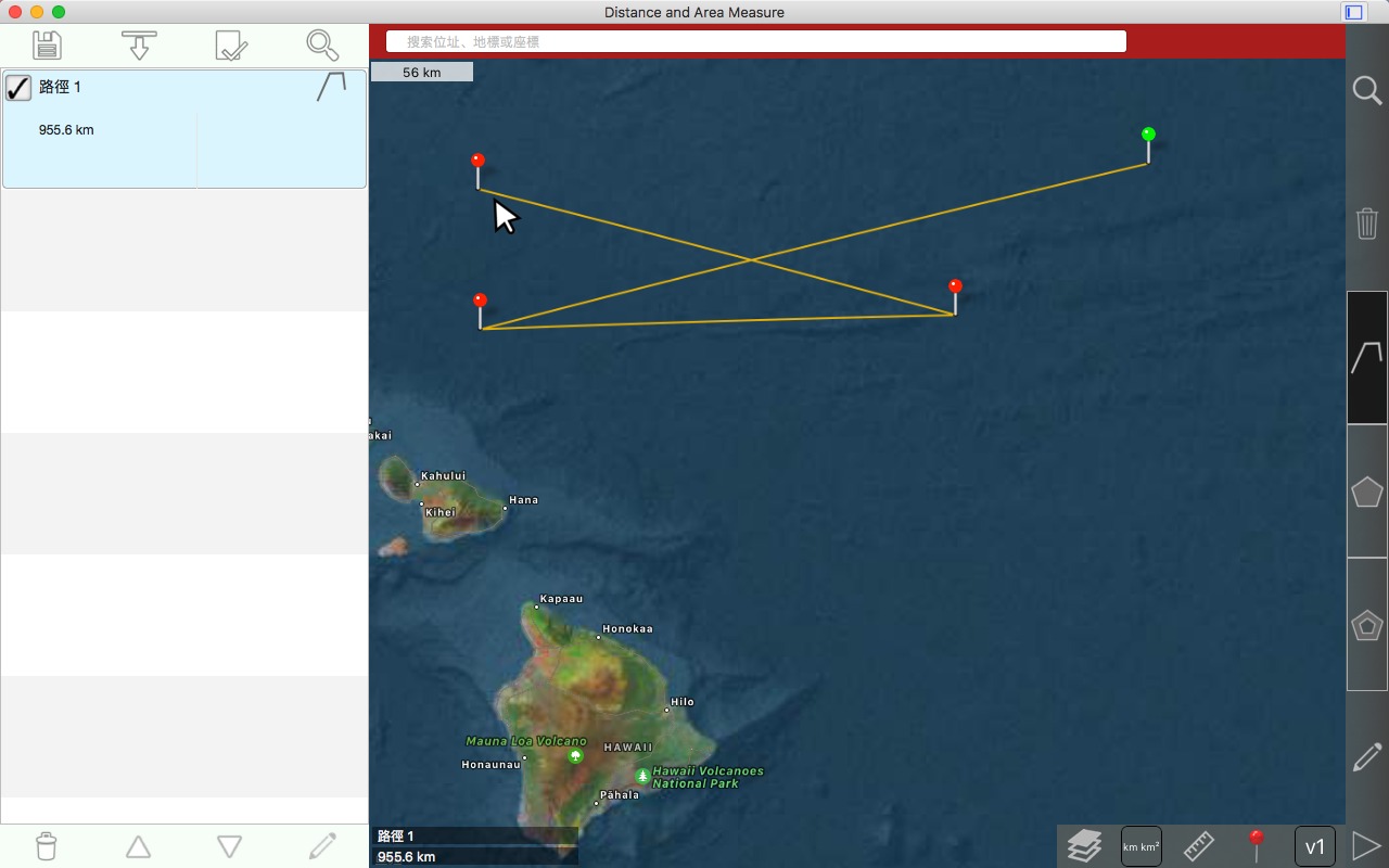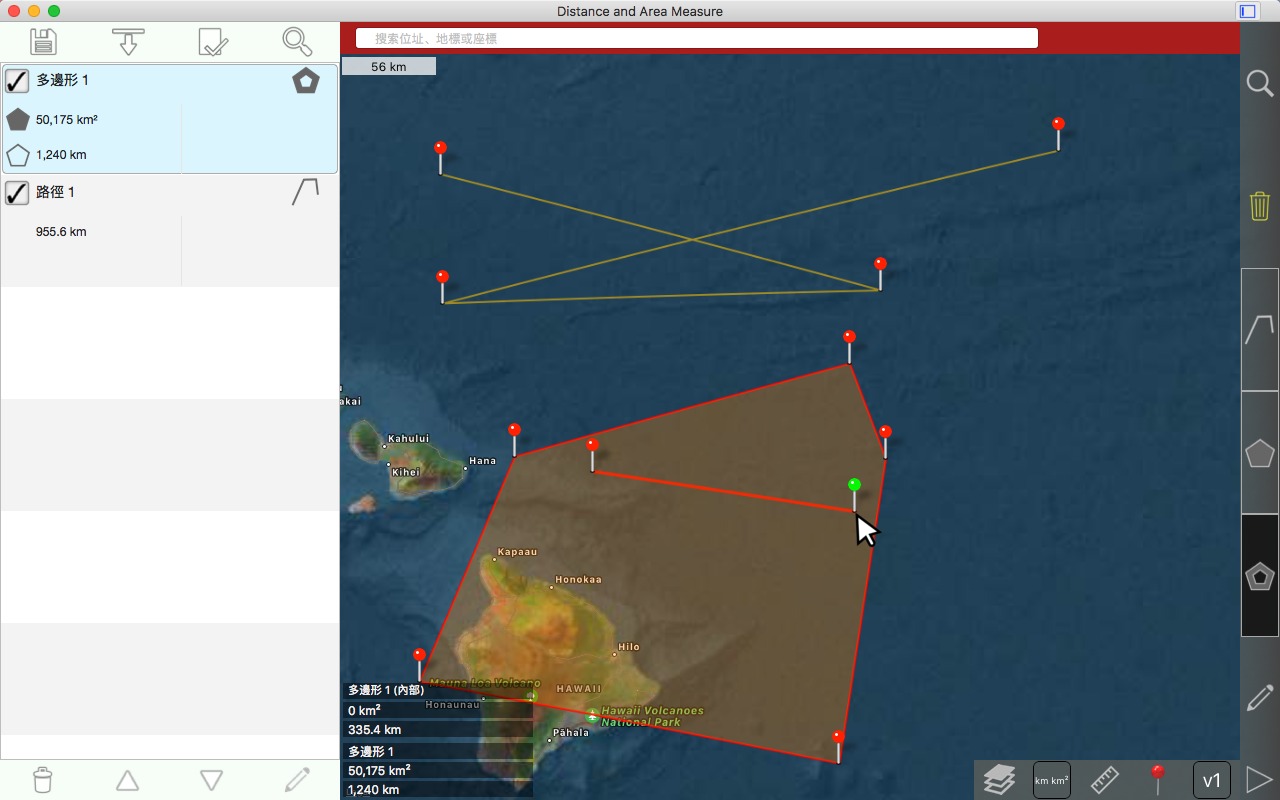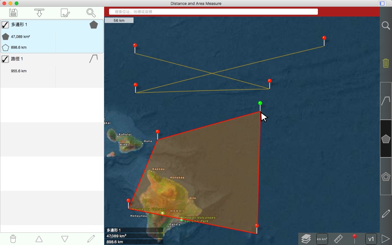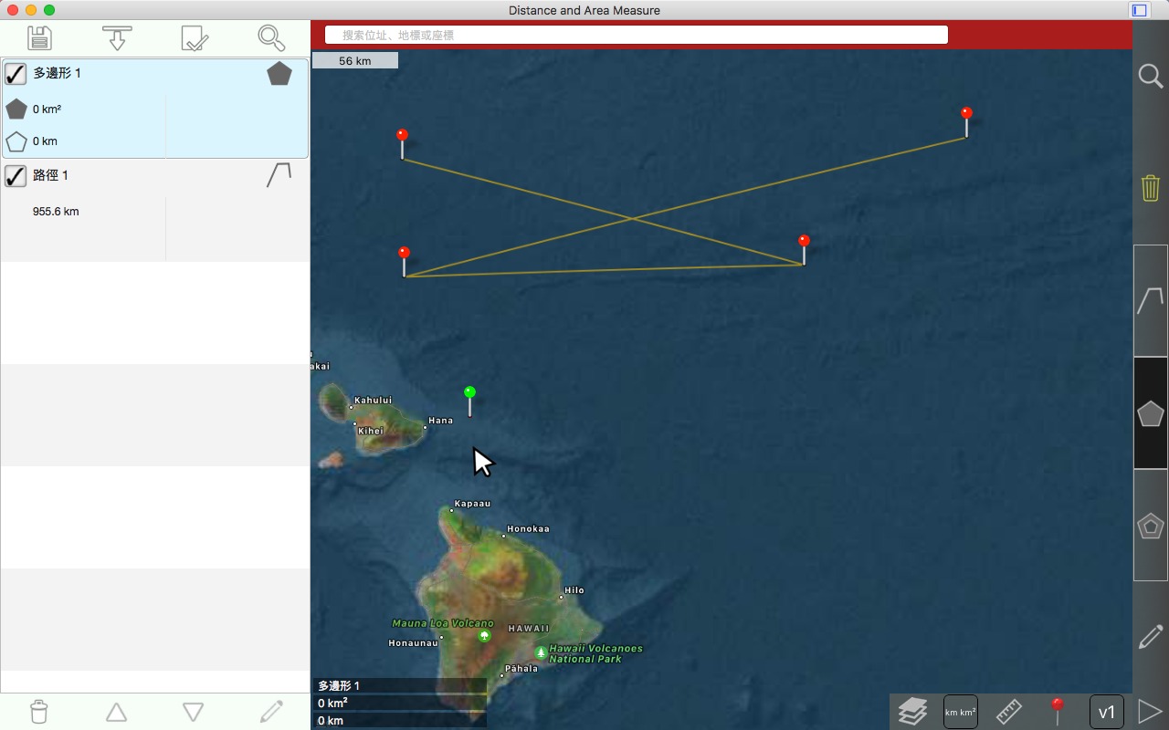 从卫星角度测量道路、公园、土地、国家、湖泊等。计算距离、区域和周长。