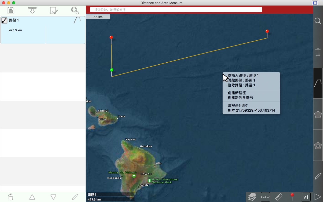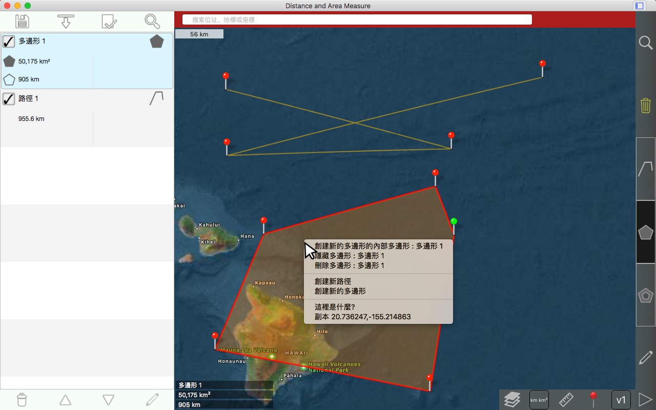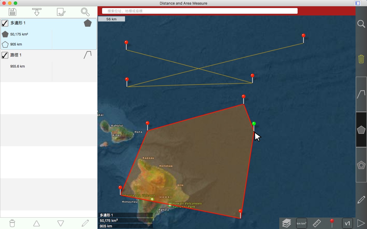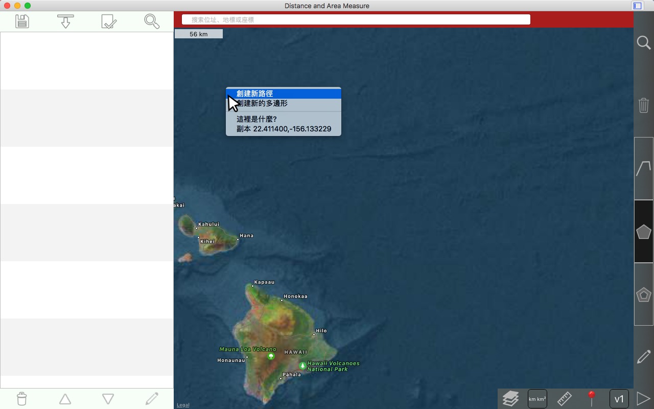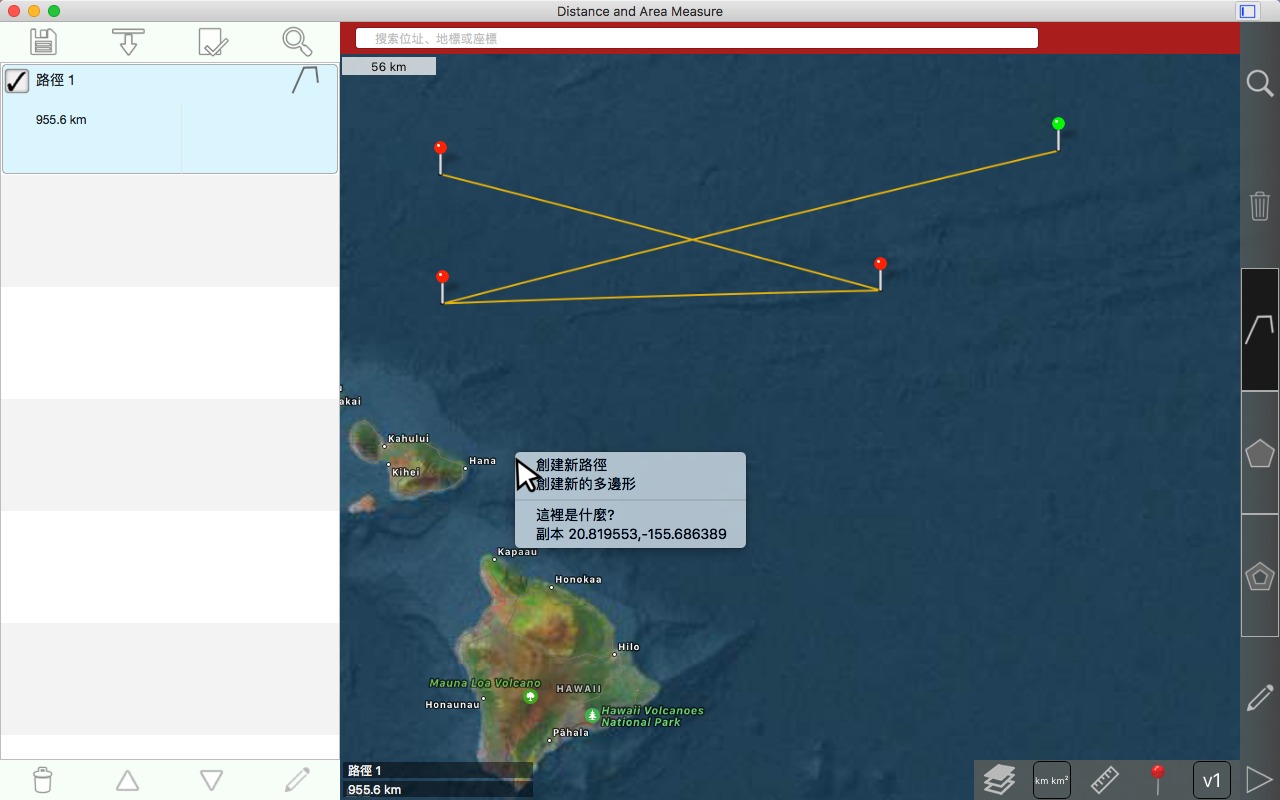 从卫星角度测量道路、公园、土地、国家、湖泊等。计算距离、区域和周长。