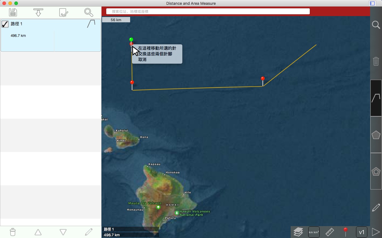 路径: 在最后一个 pin 附近显示的总距离